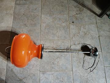lampadario anni 70. colori arancione. funzionante . abbiamo cambiato l asta in quanto era arrugginita irrimediabilmente. misure 75 cm altezza, diametro interno 23 cm.