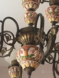Vendo lampadario anni 70 in porcellana e metallo. Usato ma in ottime condizioni