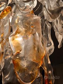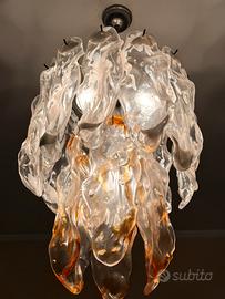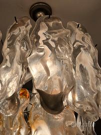 Lampadario vintage in vetro di Murano con accenti ambra.