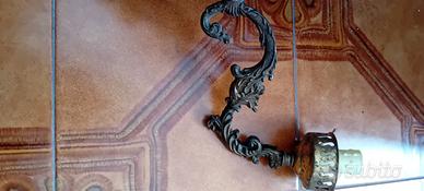 Lampadario ďepoca anni '80 usato con spazio per 3 lampadine (anche led) con portalampade con supporto a candela, con i rispettivi 3 coprilampada in vetro con decorazioni a pois bianchi. Prezzo trattabile. No spedizione, solo ritiro.