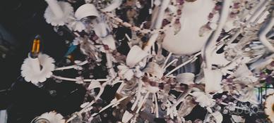 Lampadario da salone con struttura in ferro battuto bianco a 12 luci più una centrale grande