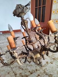Vendo elegante lampadario antico, lavorato in metallo/ottone con finitura patinata.
