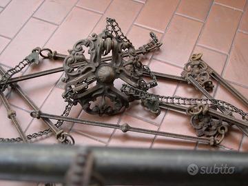Stupendo lampadario Liberty con campana/cappello in opaline bianco, di epoca fine 800 inizio 900.