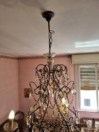bellissimo lampadario dei primi del 900 chandelier a goccia con decori in vetro
