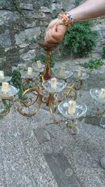 Lampadario antico ottone lavorato con gocce vetro utilizzabile con lampadine o candele
