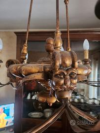 lampadario ferro battuto e legno con rivestimento in oro fine 800