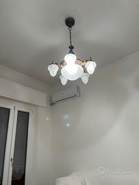 Lampadario antico in bronzo e vetro di Murano