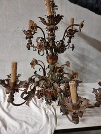 Lampadario antico in ferro battuto floreale – fine ’800 / primi ’900 – Ø 95 cm
