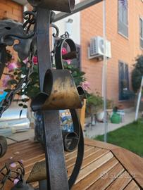 Si può notare dalle foto che il lampadario ha il chiodo che fa perno per aprire , che è antico ribattuto, uno è mancante, perche quello deve potersi sfilare per poter aprire il gancio che regge l'ampolla in vetro soffiato.