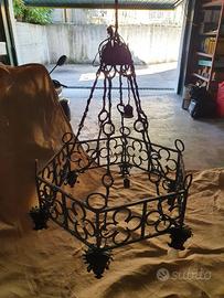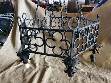 Vendo lampadario antico in ferro battuto, del XIX° secolo recuperato da un'abitazione nel centro storico di Modena posseduta dal segretario del Duca di Modena. Il lampadario ha una forma esagonale ed in ogni vertice è installata una luce. Il cablaggio attuale delle luci è da rifare. Lampadario ideale per case o casolari rustici. Pezzo unico.