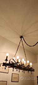Particolare lampadario in ferro battuto realizzato a mano. Color bronzo con 8 portalampade.