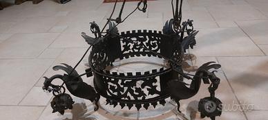 Antico lampadario in ferro battuto, ritiro solo a mano , zona Cerveteri Ladispoli.