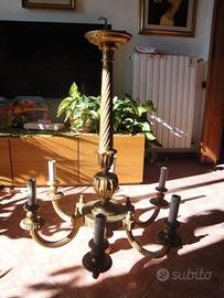Vendo, antico lampadario in legno dorato intagliato intarsiato a 6 luci, primo 900.