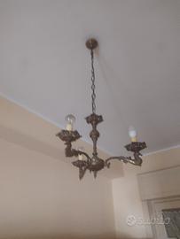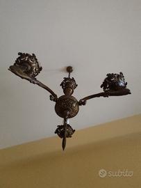 LAMPADARIO ANTICO IN OTTONE 3 LUCI VINTAGE