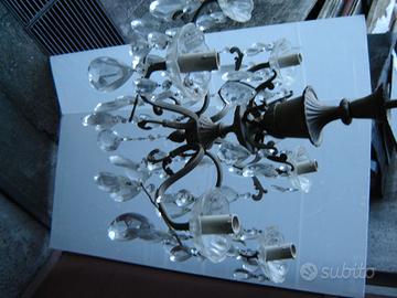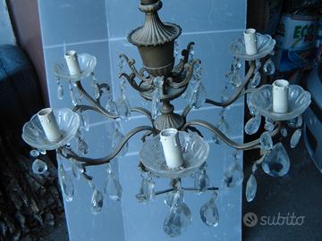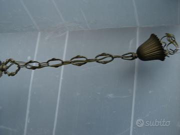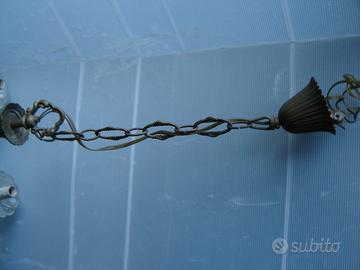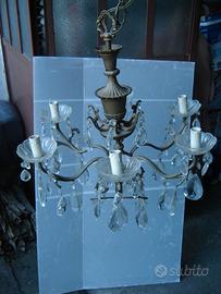 LAMPADARIO ANTICO IN OTTONE E VETRO
