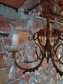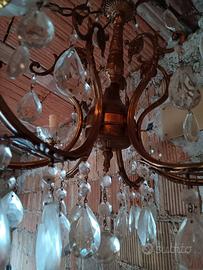 Vendo lampadario antico vintage a 6 luci in metallo con gocce pendenti in vetro sfaccettato.