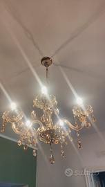 1 Lampadario da 5 luci lampada in vetro cristallo trasparente. 1 Lampada da parte Applique in vetro cristallo trasparente.