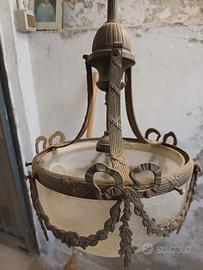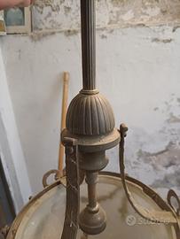 lampadario Art Deco', anno 20-30 , in metallo bronzato,non pulito o restaurato. dimensioni vetro cm 20, altezza cm 95 ca. non posso spedire data la fragilità dell'oggetto.