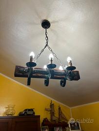 buongiorno, vendo questo bellissimo lampadario in stile arte povera in legno e ferro battuto perfettamente funzionante (come da foto)