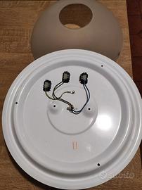 Lampadario da soffitto o da parete con plafoniera in vetro satinato e ghiera di supporto in acciaio cromato.