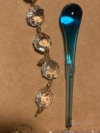 Vendo lampadario Artemide Osiride design Derossi anni ‘90; a sospensione realizzate in acciaio sabbiato e cromato, con diffusore in tessuto poliestere ignifugato, cristalli molati e gocce colorate acquamare (alcune mancanti/danneghiate).