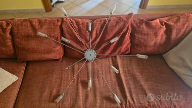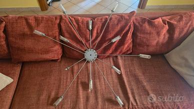 lampadario Acciaio soffitta raggi color alluminio con lampadine. come da foto ad un raggio manca un vetrino satinato