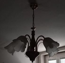 Lampadario artigianale in ottone e vetro bianco soffiato vendesi