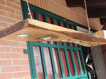 Lampadario costruito a mano, legno antico ma stile moderno! in fase di conclusione perciò si può scegliere il colore finale! Lunghezza cm. 106 , largh. cm. 22 al centro, legno in rovere nostrano di anni 70 ( !! ) trattato con anti tarme e impregnato. Luci: 6 led a 220 volt 4,5 watt, luce naturale. Contattatemi x info