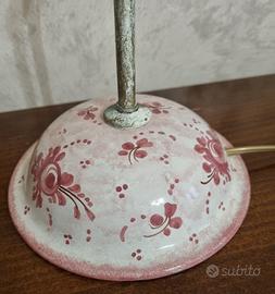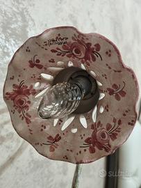 Splendido lampadario completo di due abat- jour in ceramica,interamente fatto a mano a Castelli (Abruzzo).Il pezzo è firmato dal rinomato maestro Nino Facciolini,garanzia di qualità e tradizione ceramista d'eccellenza. Ottimo stato,ideale per ambienti classici o rustici.