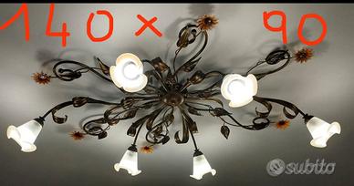 Bellissimo Lampadario artigianale in ferro battuto e decorazioni floreali con numero 6 campane in vetro… perfettamente funzionante come nuovo