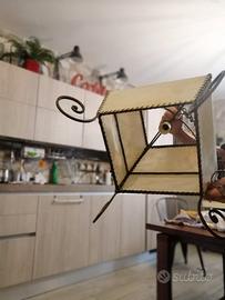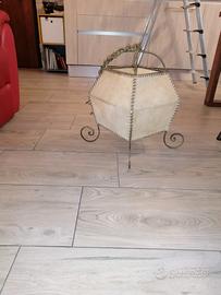 Lampadario artigianale in ferro battuto rivestito in pelle di capra. 30€