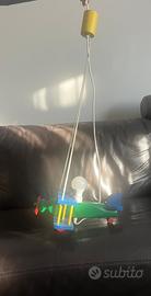 Lampadario a Sospensione per Cameretta Bimbi, Lampada Aereo in Legno Colorato, 34x30 cm