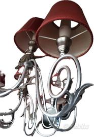 Splendido lampadario con 24 paralumi in tessuto pendenti in cristallo per sale ricevimento o saloni