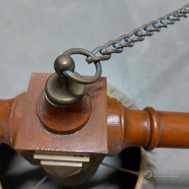 bellissimo lampadario da salotto , ideale per biliardo. In legno , con catenelle e coppa in ottone . pezzo unico, raro, per arredamento di classe.