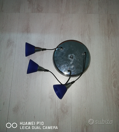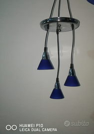 Vendo lampadario per cameretta con 3 luci e vetro blu.
