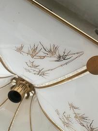 Questo splendido lampadario, realizzato in vetro e dettagli dorati aggiungerà un tocco di eleganza e raffinatezza a qualsiasi ambiente. Le sue linee sinuose e la trasparenza del vetro creano un gioco di luci e ombre che dona atmosfera e calore. Perfetto per illuminare soggiorni, sale da pranzo o camere da letto, questo lampadario è un vero e proprio elemento d'arredo che non passerà inosservat