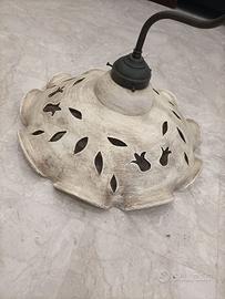 Lampadario bilanciere in ottone con coppe in ceramica artigianali fatte a mano a rintaglio.