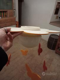 Lampadario da soffitto in legno, vetro e plastica (le parti elettriche). Ingombro totale 40cm. No spedizione, solo ritiro/consegna. Prezzo non trattabile.