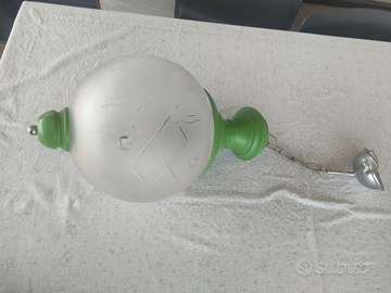 Lampadario in vetro satinato serigrafato con finitura in alluminio opaco verde . Completo di lampadina interna molto adatto per camere da letto. Diametro 26 cm