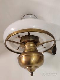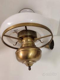 lampadario a forma particolare con neon rifinito in ottone in ottime condizioni