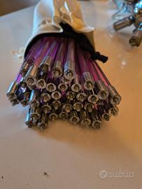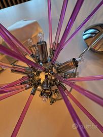 vendo lampadario moderno, composto da portalampade g9 in acciaio e 60 inserti in vetro colore fuxia, marca raggi. Pagato nuovo 270 €.