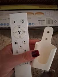 Lampadario in stile moderno placato in oro. Dotato di telecomando per cambiare colore e intensità della luce. Mai utilizzato, preso di recente dal negozio. Ancora confezionato per come è uscito dal negozio