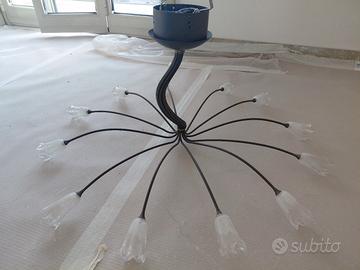 Caltanissetta. Vendesi lampadario 12 luci in vetro decorato finemente e ferro battuto. Molto elegante e di effetto sia per una sala da pranzo che un living.