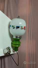 Lampadario camera bimbo con animali 1960/1970 in vetro opalino bianco e verde