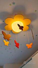 Lampadario plafoniera per cameretta bambini a forma di fiore con farfalle, ottime condizioni, perfettamente funzionante, con lampadina luce calda. mod Philips 40096/34/16