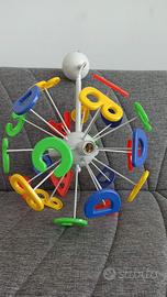 Simpatico lampadario globo colorato con lettere alfabetiche, pari al nuovo,con tre portalampade E14 per poter montare lampadine a led per un risparmio energetico diametro 40cm,