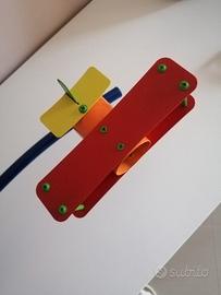 Lampadario cameretta colorato con 4 aeroplanini porta faretti orientabili nella direzione desiderata. Si aggancia come una plafoniera al soffitto.