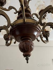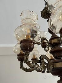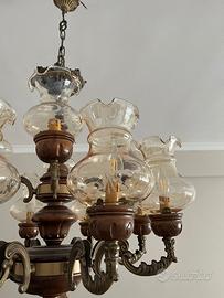 Lampadario stile candelabro vintage in legno e vetro