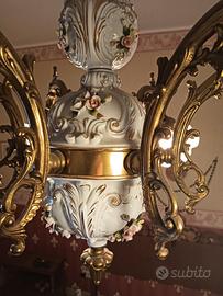Lampadario in Capodimonte con sei luci, ottime condizioni, decorazioni tutte sane.
