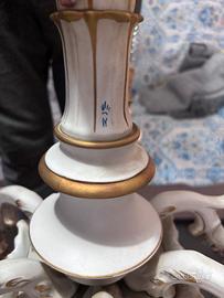 Vendo splendido lampadario originale Capodimonte in pregiata porcellana bianca con rifiniture in oro zecchino e decorazioni floreali a rilievo realizzate a mano.